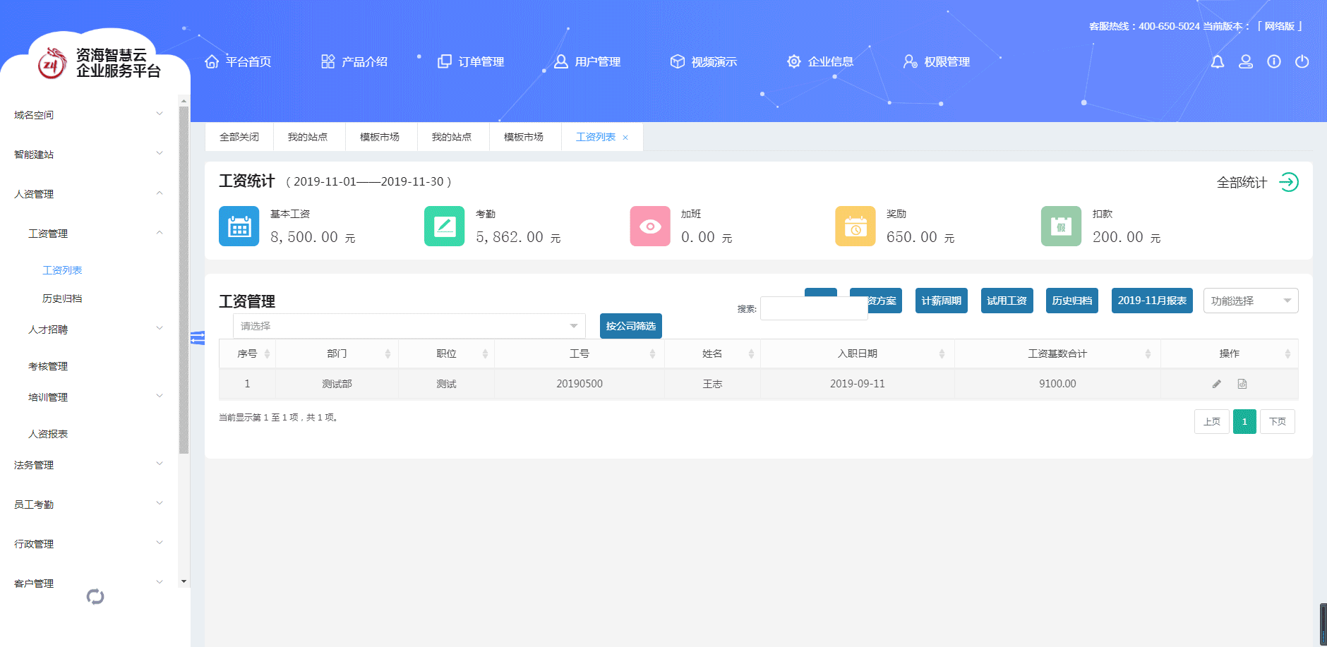 員工檔案管理、微信考勤、無感知考勤、考勤管理、外出管理、工資管理、招聘管理、培訓管理、考核管理、人資報表、出差管理。