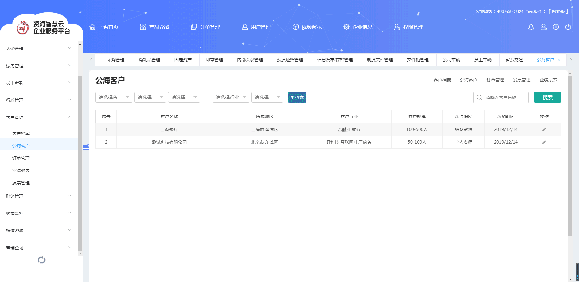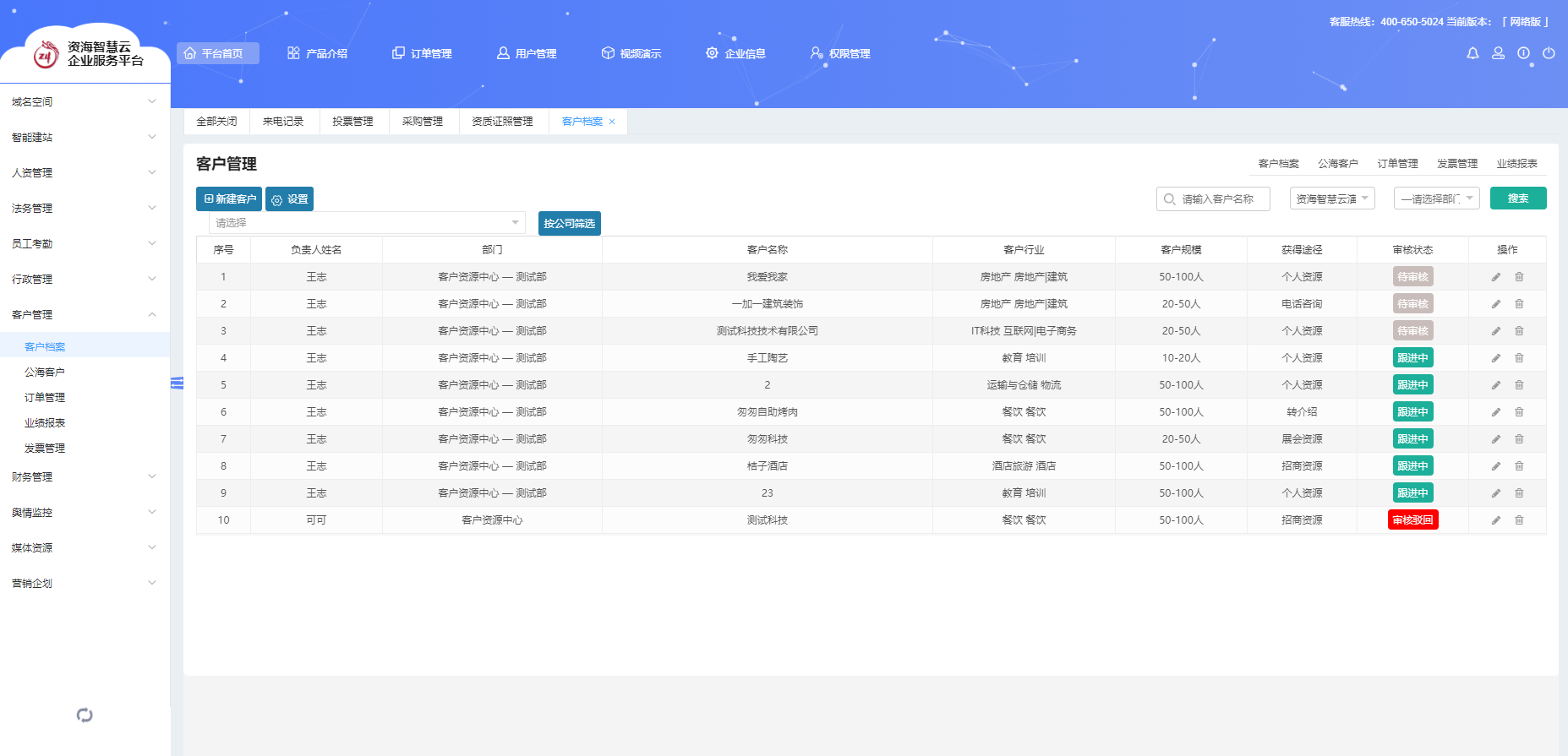 客戶檔案、公海客戶、訂單管理、發(fā)票管理、營銷線索管理、業(yè)績報表。