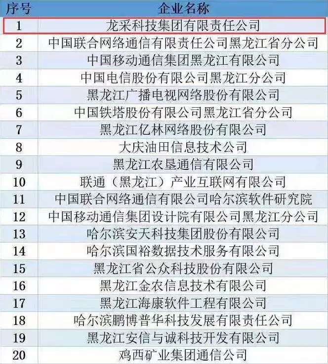 2019年黑龍江省互聯(lián)網(wǎng)企業(yè)20強名單