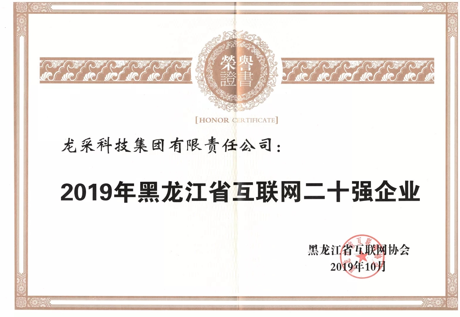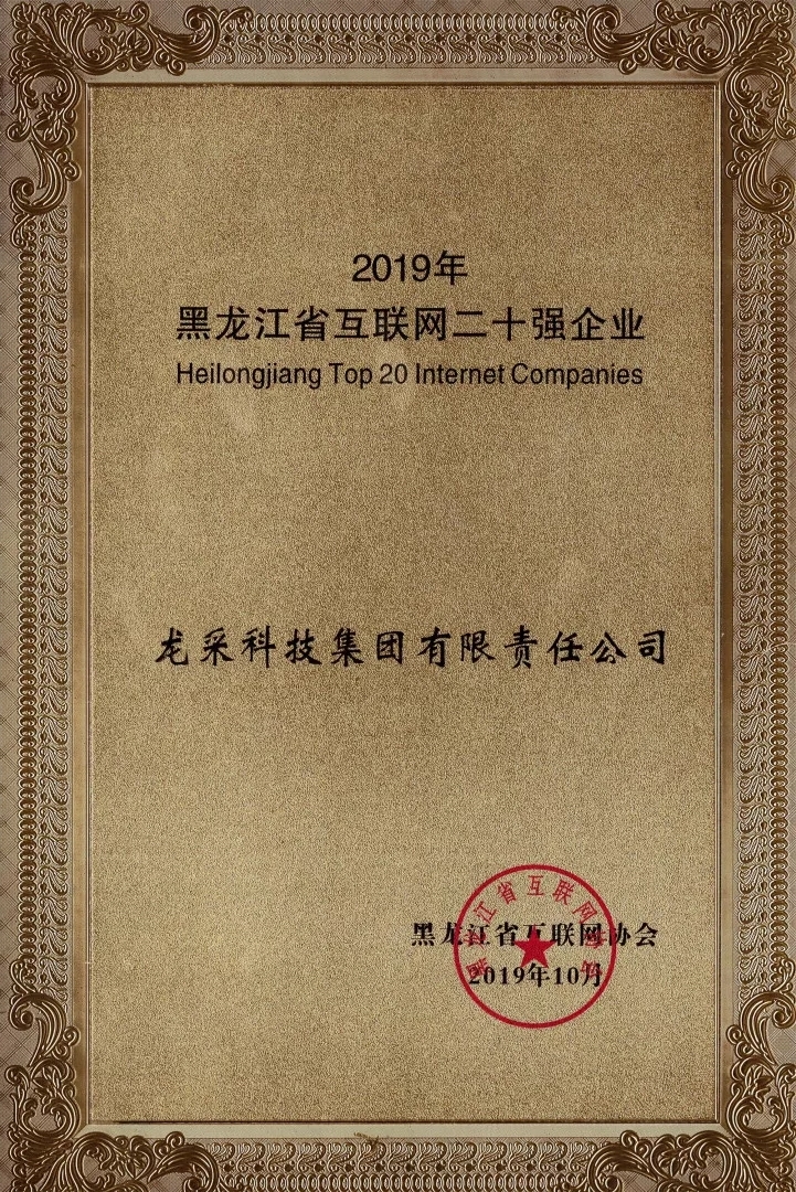 2019年10月25日,由黑龍江省互聯(lián)網(wǎng)協(xié)會主辦的2019年黑龍江省互聯(lián)網(wǎng)企業(yè)20強評選活動在哈爾濱揭曉,龍采科技集團以卓越的技術研發(fā)實力及創(chuàng)新能力,榮登2019年黑龍江省互聯(lián)網(wǎng)企業(yè)20強榜首。本次活動經(jīng)過面向社會公開征集、各互聯(lián)網(wǎng)企業(yè)自愿申報、專家委員會綜合評審,并向行業(yè)主管部門征求意見和向社會公示之后,最終評選出2019年黑龍江省互聯(lián)網(wǎng)企業(yè)20強及成長型企業(yè)10強。省內(nèi)電信運營企業(yè)、互聯(lián)網(wǎng)企業(yè)等多家單位代表參加了會議。