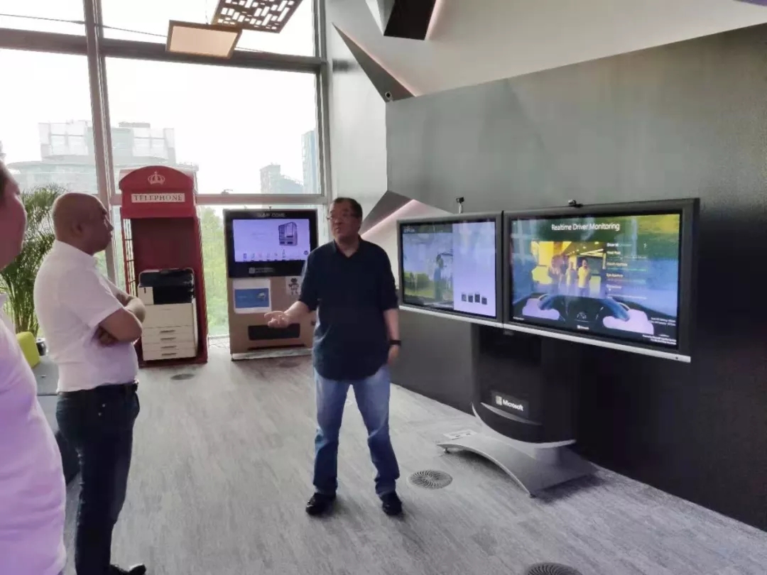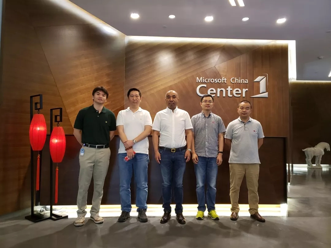 2019年7月10日龍采企業董事長楊春波、龍采科技集團信息管理總裁兼企劃宣傳總裁姚響、百度項目總裁佘偉、龍采科技集團產品運營總裁黃能一行受邀參觀微軟中國總部。