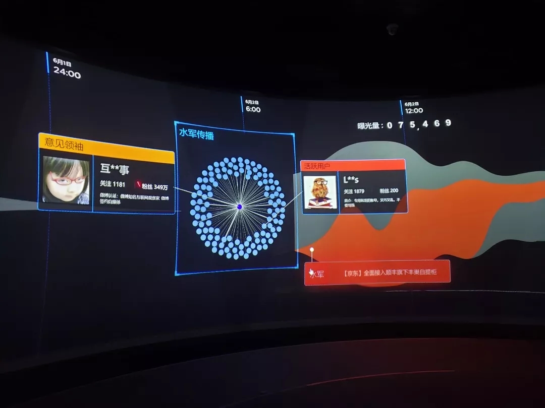 直觀呈現微軟全球范圍內強大的數據節點網絡以及通過AI技術對輿情進行分析的效果。