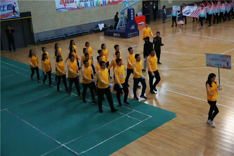 在主持人的介紹下,伴著嘹亮的運動員進行曲響起,龍采健兒精神抖擻,依次入場接受集團領導的檢閱。