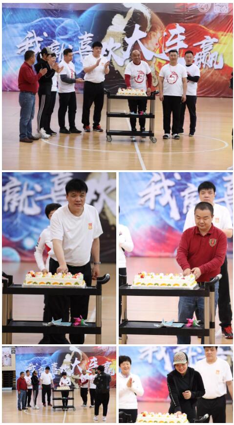 借著運動會之際,一個大大的蛋糕被緩緩推到賽場,楊老師與各戰線領導相繼現場切蛋糕共同慶賀大連龍采成立十周年!